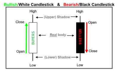 • Bullish or White Candlestick: indicates that the session’s closing price was higher than the session’s opening price. This indicates that purchasers kept control and spent more time lobbying for higher prices.